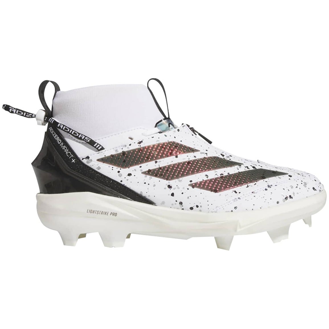 Turn every play into a highlight with the adidas Adizero Impact+ 2.0 SE Shades Molded Cleats, combining attention-grabbing neon colors and paint splatter graphics with versatile TPU construction for leagues requiring non-metal cleats. This limited edition release delivers the same lightweight speed and expressive style as the metal version in a molded configuration that brings bold energy and relentless performance to any playing surface.