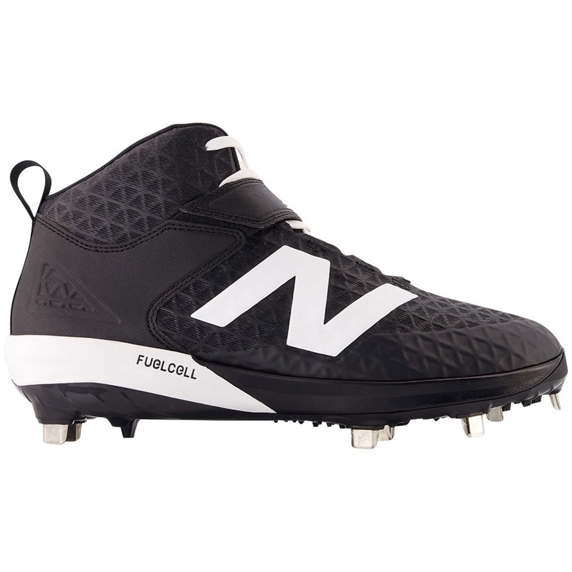 Command the diamond with New Balance's mid-cut metal cleats featuring advanced FuelCell technology and enhanced ankle support designed for players who demand maximum performance and stability during competitive play.